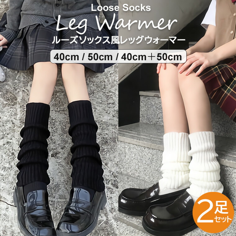 レッグウォーマー レディース ルーズソックス 2足セット 選べる2サイズ&カラー 40 50 ホワイト ブラック リブレッグウォーマー 靴下 ソックス 足首ウォーマー 防寒