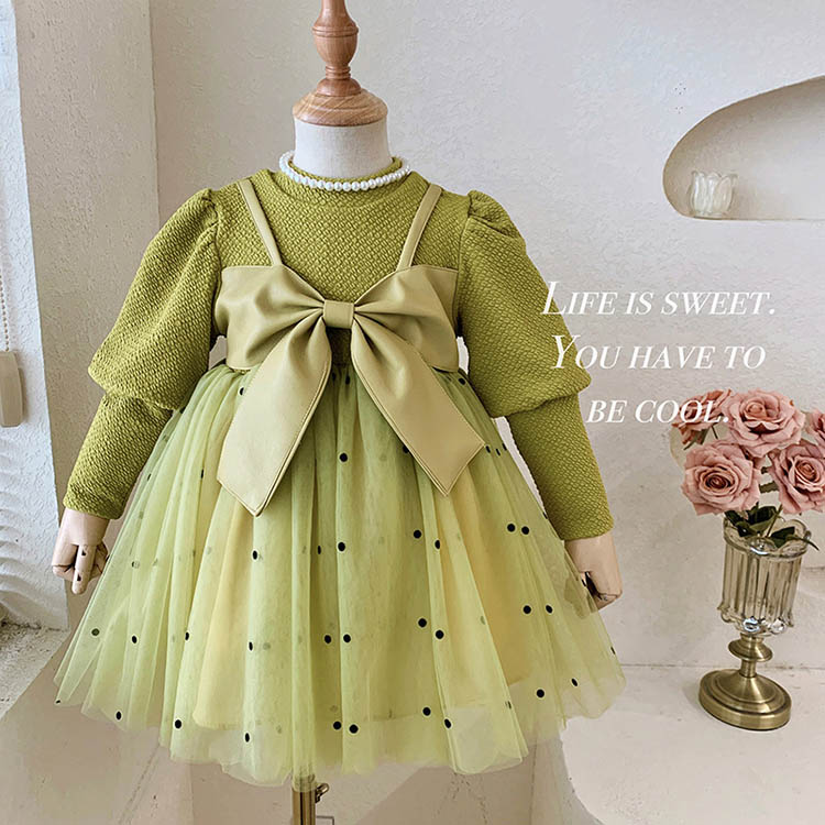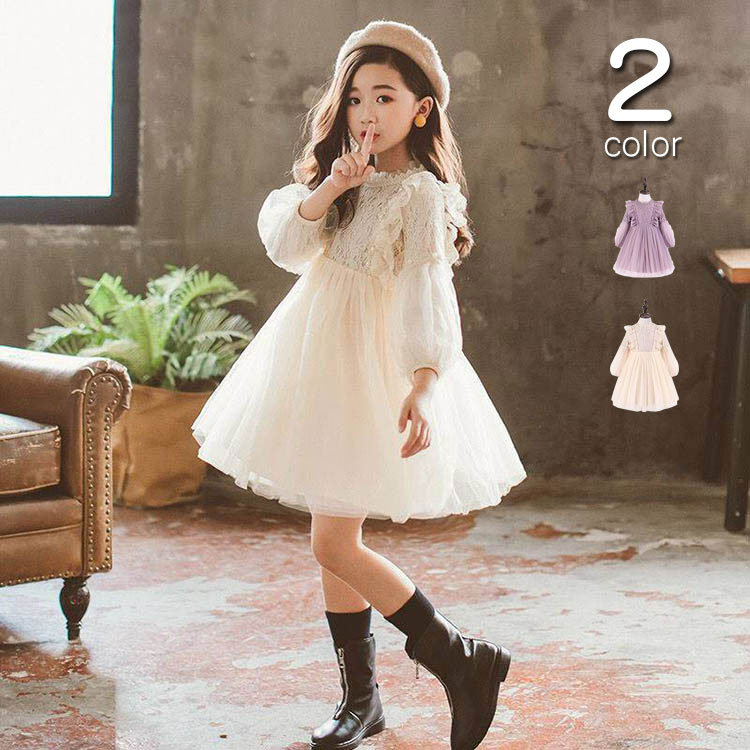 ワンピース 女の子 子供服 キッズ 秋 冬 100 110 120 130 140 150 長袖 リボン ボウタイ チュール スカート結婚式 ピアノ 発表会 七五三 おしゃれ 可愛い 子供服 お姫様