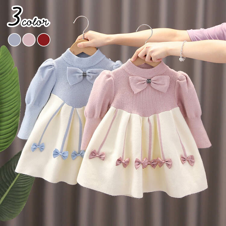 ワンピース キッズ 女の子 こども 子ども服 長袖 ニットワンピ ガーリー カジュアル おしゃれ 可愛い かわいい 子供服 スーツ 入学式 卒業式 男の子 発表会 卒園式 小学校 入学式 誕生日