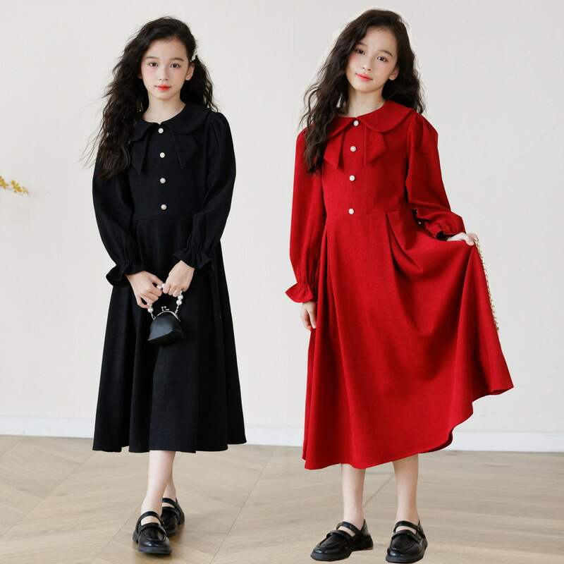 ワンピース 女の子 キッズ服 女の子 ワンピースドレス 長袖 無地 フリル プリンセスドレス 暖かい ドレス子供服 可愛い カジュアル かわいい パーティー スカート 結婚式 通園 発表会 学園祭 演