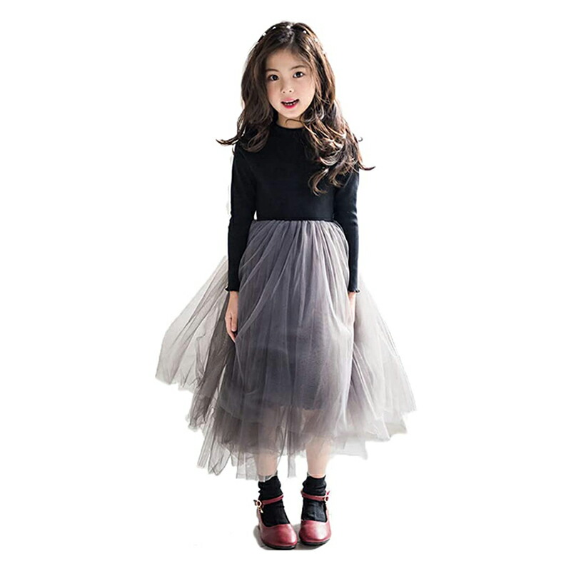 異素材切り替えワンピース 女の子 子供服 こども服 子ども服 キッズ 春 秋 冬 異素材 チュール おしゃれ 可愛い 100 110 120 130 140 150 160