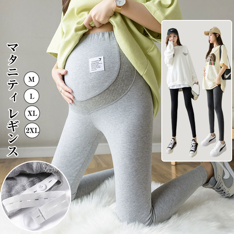 マタニティ レギンス タイツ パンツ 春 秋 無地 ストレッチ 妊婦 産前 産後 妊娠 スパッツ ウエスト調整 部屋着 ライトグレー ダークグレー ブラック M L XL XXL