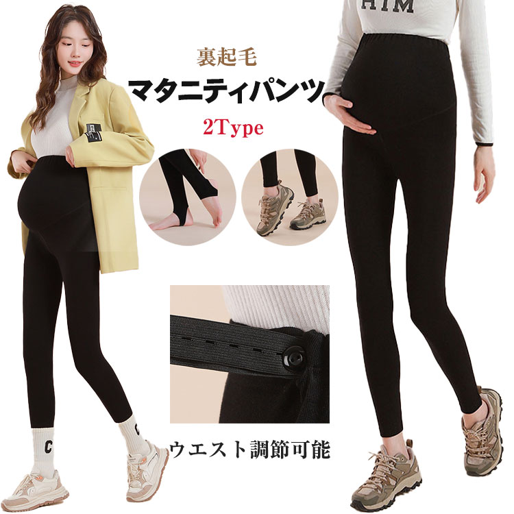 2タイプ 裏起毛 マタニティパンツ レギンス トレンカ 妊娠のズボン 秋冬 あたたかい マタニティ用品 美脚 フィット ストレッチ パンツ ウエスト調節可 スキニー カジュアル 普段着 ブラック フリ