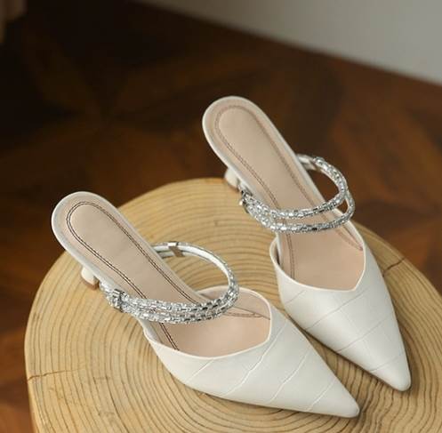 レディース ミュール ハイヒール 6.5 ポインテッドトゥ ストラップ 美脚 脚長 ラインストーン レザー 大人可愛い きれいめ シンプル 上品 おしゃれ かっこいい エレガント キュート