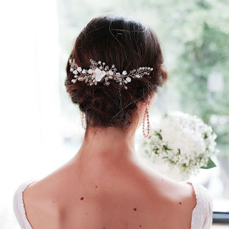 コーム 小枝 ヘアアクセサリー ウェデイング ヘッドドレス 小枝アクセサリー ヘッドコサージュ 花 パール髪飾り ビジュー花 フラワー ティアラ ブライダル 花嫁 結婚式 ブライダルアクセサリー ウエ