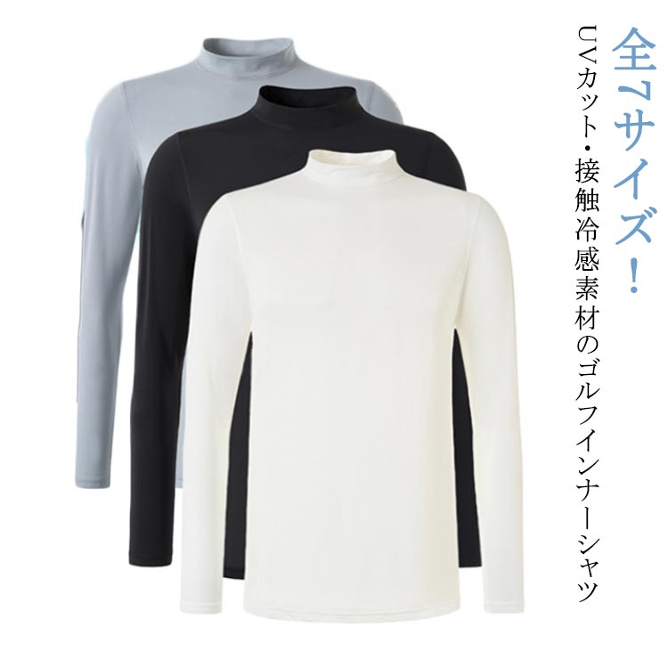50+ カット ゴルフウェア メンズ 長袖 インナー シャツ アンダーウェア ハイネック ひんやり 接触冷感 涼しい ゴルフシャツ ラッシュガード インナーシャツ トレーニングウェア