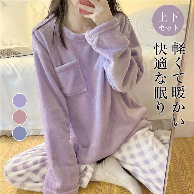 パジャマ レディース 上下セット 2点セット 暖かい ルームウエア 女性用 部屋着 保温 秋冬 寝巻き 楽チン 厚手 無地 可愛い 柔らかい 快適