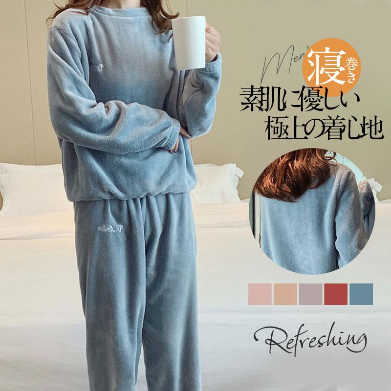 パジャマ ルームウェア レディース 冬 上下セット もこもこ 部屋着 寝巻き 厚手 暖かい 長袖 寝間着 ナイトウェア ゆったり ふわふわ 防寒 秋冬