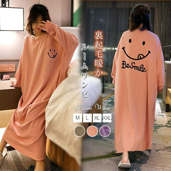 ルームウェア レディース 冬 ワンピース 長袖 パジャマ 裏起毛 もこもこ 部屋着 レディース 大きいサイズ 秋冬 暖かい ネグリジェ あったか ゆったり ルームウェア マキシ丈 可愛い