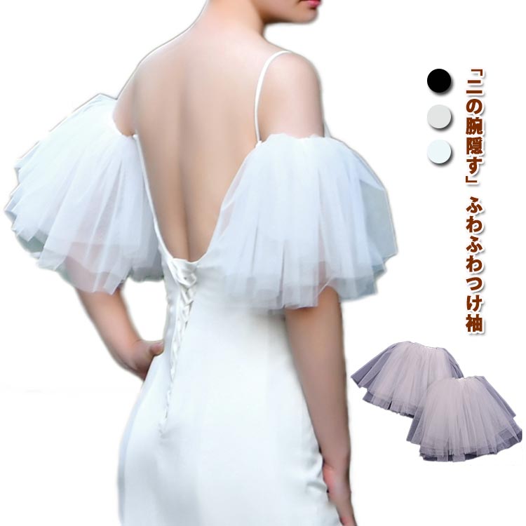 ブラック ドレス 長袖 ウェディングドレス用 ふんわり パーティードレス用 隠し アームカバー ホワイト アームドレス ソフトチュール 二の腕カバー ふわふわつけ袖 ワンピース用 ブライダル 付け袖