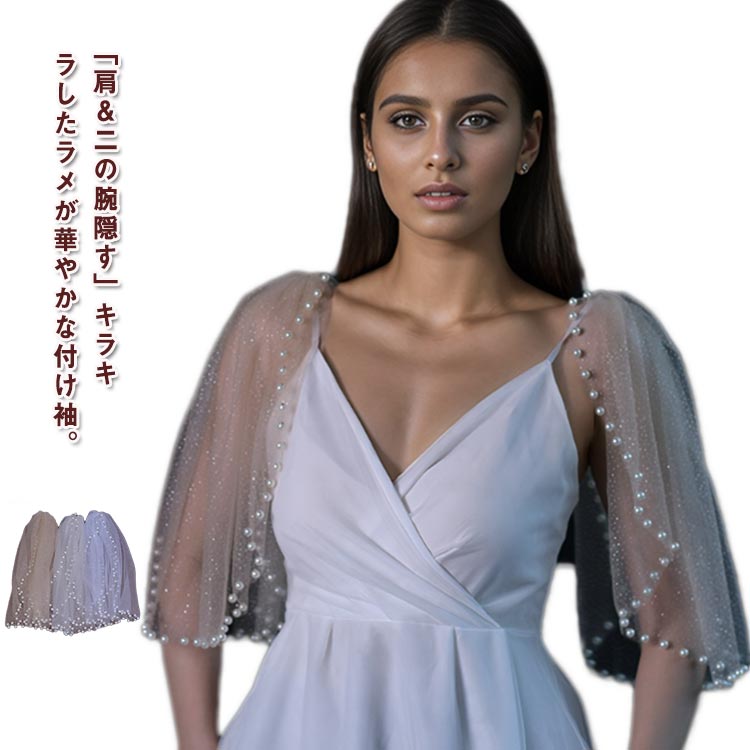 つけそで ノースリーブ服用 メッシュドレス 発表会 取り外し袖 ロング パール 装飾袖 ラメ 付け袖 ドレス 結婚式 パーティー 二次会 海外挙式 披露宴 前撮り 後撮り スパンコール