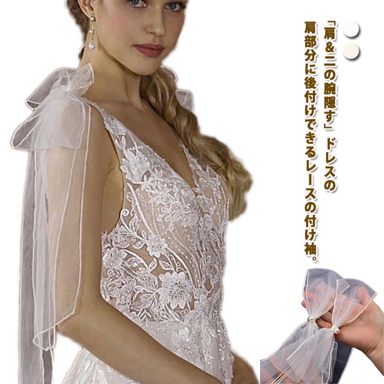 付け袖 ウェディングドレス用 アームカバー 肩 隠し ワンピース用 二の腕 花嫁 チュールレース ソフトチュール ブライダル ウエア シアー ドレス ノースリーブ パーティードレス用 チュール 結婚式