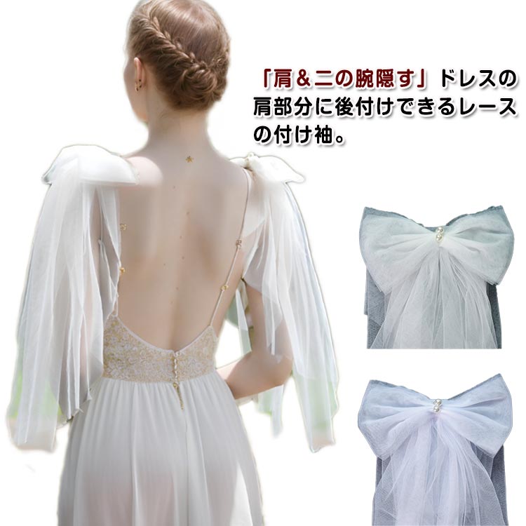つけそで 取り外し袖 ノースリーブ服用 パーティー ドレス パール リボン メッシュドレス 付け袖 ロング 結婚式 ドレス 二次会 海外挙式 披露宴 前撮り 後撮り 発表会 装飾袖