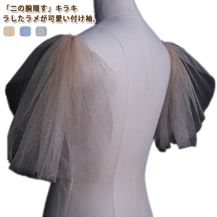 アームドレス チュールレース ドレス ラメ入り 付け袖 二の腕 ブライダル 隠し ソフトチュール アームカバー 花嫁 結婚式 ノースリーブ パーティードレス用 ウェディング ワンピース用