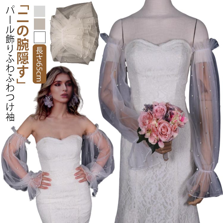 装飾袖 つけそで パール メッシュドレス 取り外し袖 ロング ノースリーブ服用 ドレス 結婚式 付け袖 パーティー 二次会 海外挙式 披露宴 前撮り 後撮り 発表会 演奏会