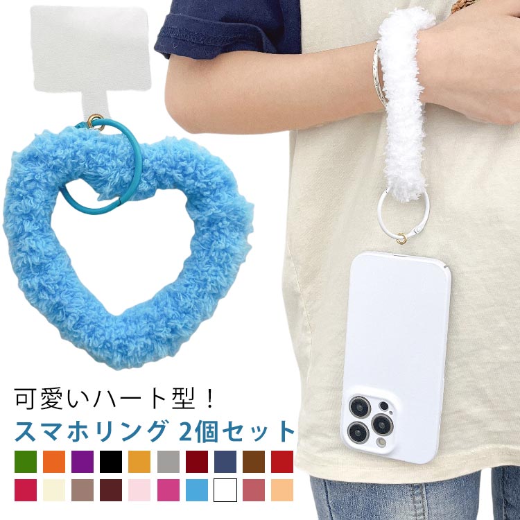 全20色 スマホストラップ スマホリング ハート スマホリングストラップ スマホ ホールドリング 手首 挟むだけ シリコンリング リング もこもこ ファー ストラップ