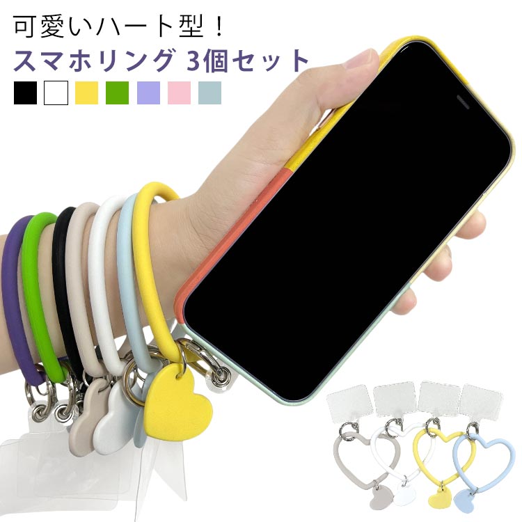 スマホストラップ スマホリング ホールドリング スマホリングストラップ スマホ 挟むだけ 手首 3個セット ストラップ リング ハート 可愛い ハー シリコンリング