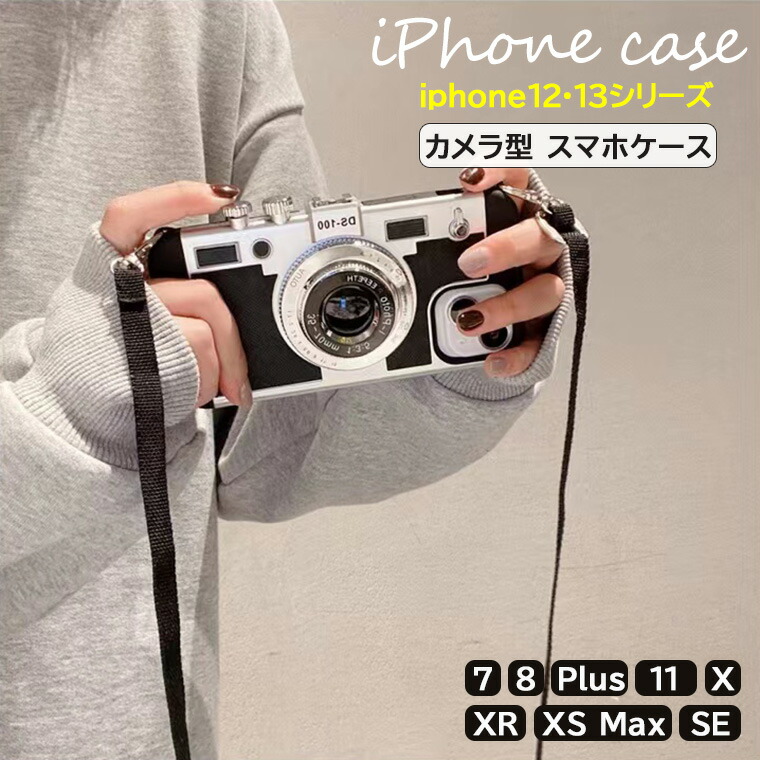 斜め掛けストラップ付きカメラ型スマホカバー♪ iPhoneケース スマホケース スマホショルダー カメラ型 iphone iphone13 iphone12 promax 携帯 カバー メンズ レディ