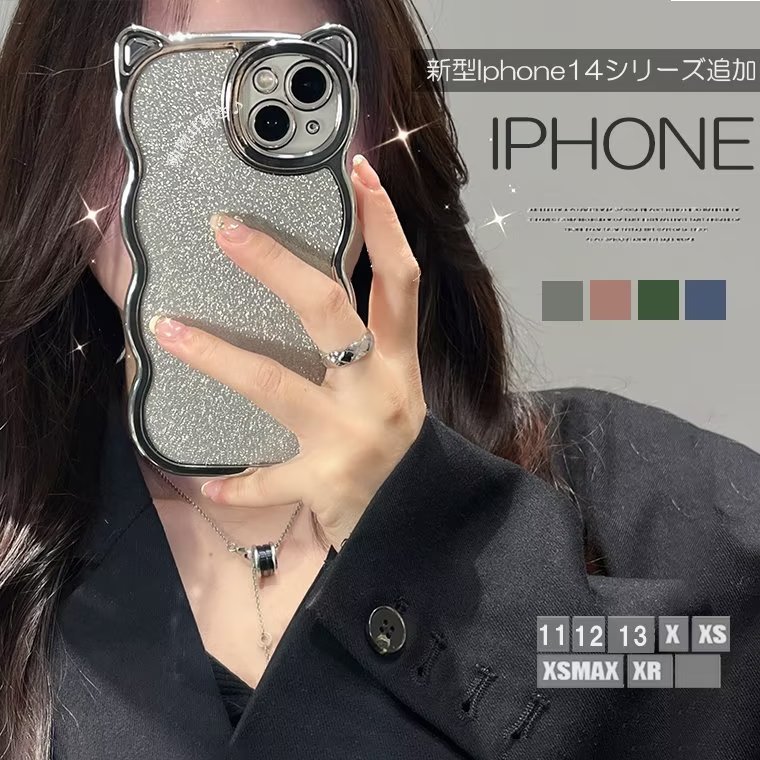 新機種追加 iPhone14シリーズ対応 びキラキラ光る ラメ グリッター 猫耳 ねこ耳 携帯ケース スマホケース カバー iPhone13 12 11 Pro ProMax iPhoneX XS X