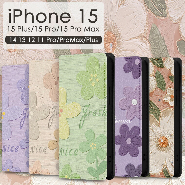 iphone15シリーズ新追加 花柄 フラワー 手帳型 スマホカバー カード入れ アート 雑貨 パステルカラー 無地 スマホケース ケースカバー iphone14 iphone13 iphone12