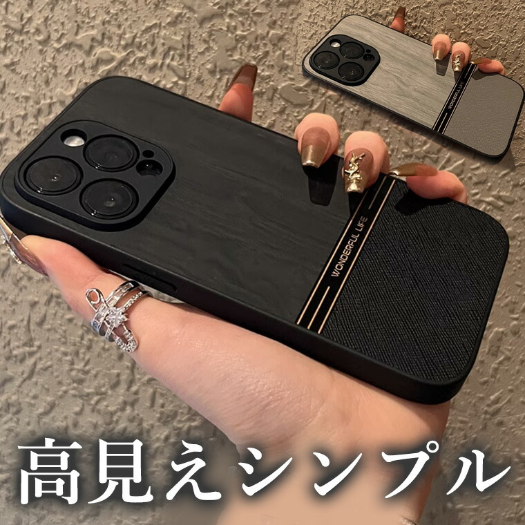 シンプルかっこいい 高見え 木目調 ブラック グレー iphone15対応 iphoneケース iphoneカバー 黒 シンプル メンズ ブランド iphone14 iphone13 iph