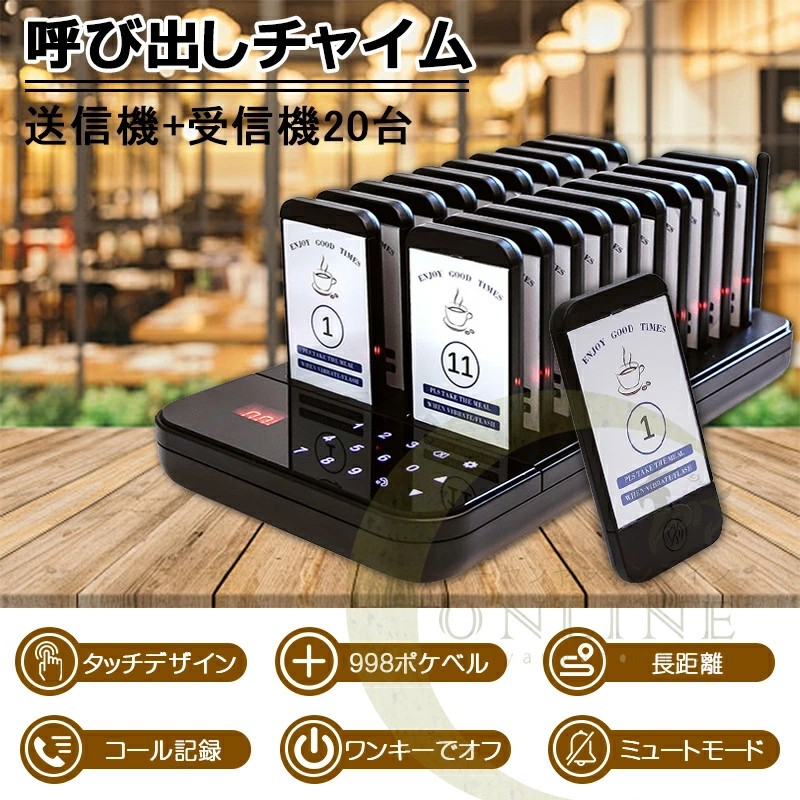 16台 セット 振動 ブザー ライト タッチスクリーン 子機増設可能 コール履歴表示可能 業務用呼び出しベ 呼び出しチャイム フードコート コールベル 病院 居酒屋 飲食店 歯科医院用