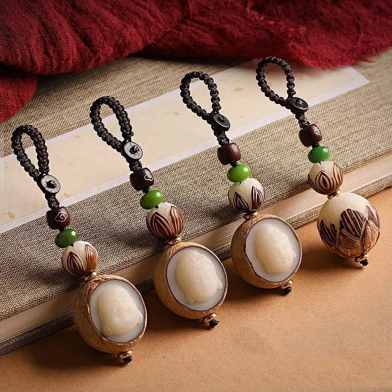 キーホルダー 彫刻 ペンダント 観音 車のキーホルダー ピースチスマートフォン タブレット スマートフォン 携帯電話アクセサリー ストラップ マスコット