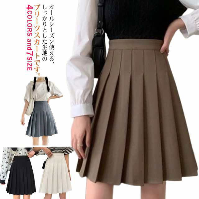 ~5 42/60/80 プリーツスカート 無地 学生服 体型カバー