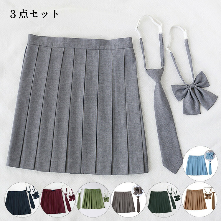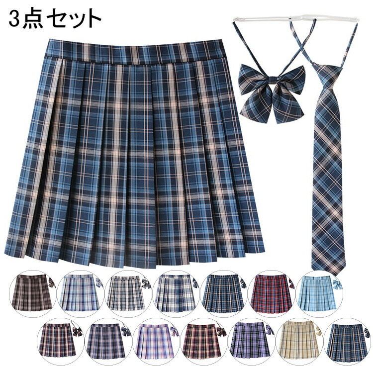 3点セット スカート ネクタイ ボウタイ 制服 スカート チェック 大きいサイズ スクールスカート プリーツスカート ギンガムチェック 学生服 女子高生 制服 コスプレ セーラー服 高校生 中学生 お