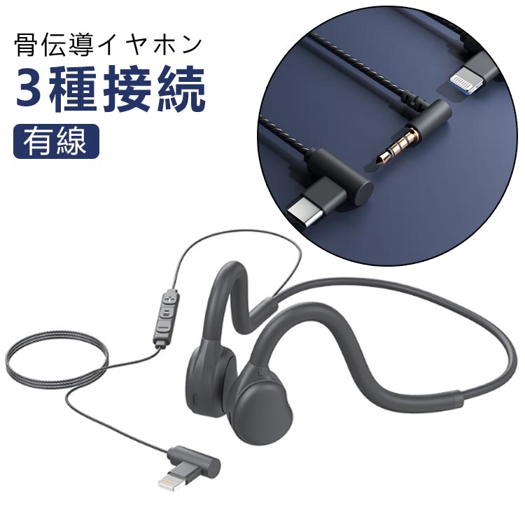 オープンイヤー 骨伝導 有線イヤホン 骨伝導イヤホン ブラック マイク 黒 有線 イヤホン ハンズフリー通話 ヘッドセット オフィス ながら聴き 開放型イヤホン 在宅ワーク 軽量 長時間 ゲーム