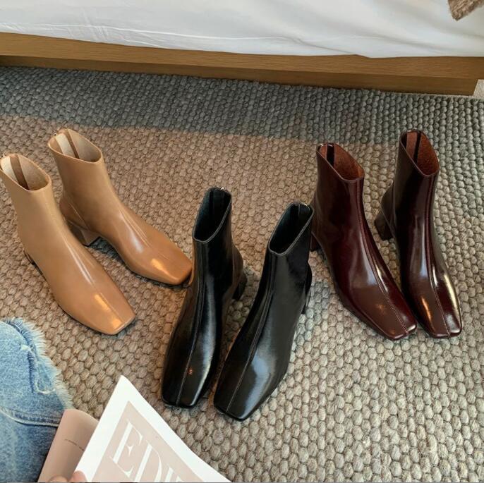 レディースブーツショートブーツPU スクエアトゥ ブーツストレッチ素材ショート丈秋冬ストレッチソックスブーツ