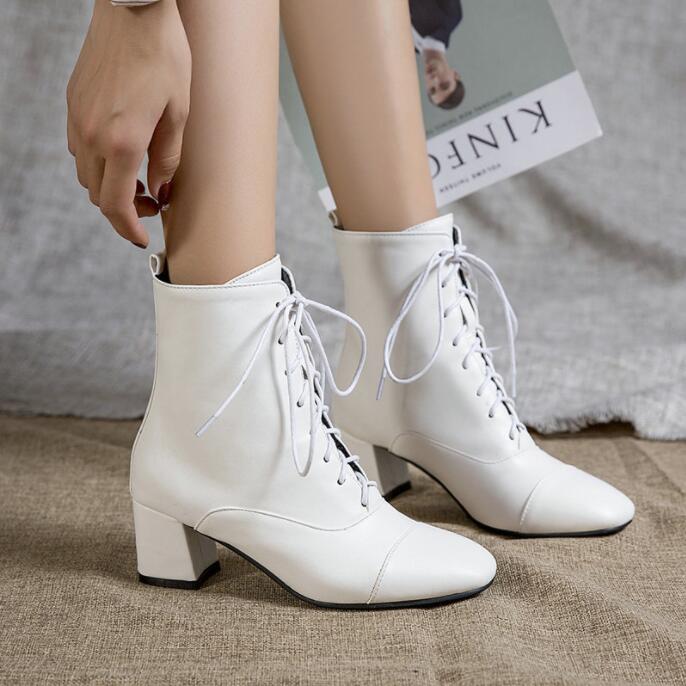 ショートブーツ レディース レースアップショートブーツ 厚底 ショートブーツ シンプル レースアップブーツ 靴 美脚 ブーティ 太ヒール