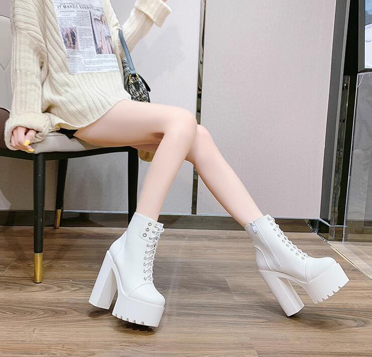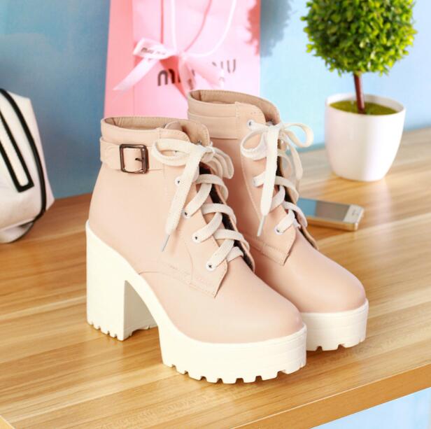 ショートブーツ厚底ブーツ 編み上げブーツ 歩きやすい ショートブーツ ブーツ 靴 美脚 太ヒール 疲れにくい
