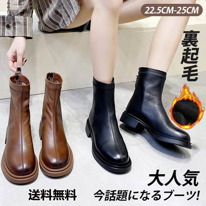 デイリー使いしやすいフラットブーツはローヒールでも形が綺麗に見えるようセンターシームを入れすっきりとした印象に 甲高 裏起毛 普通 足が痛くならない 美脚