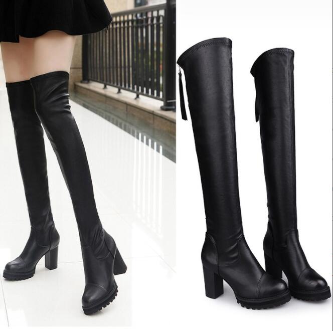 ロングブーツ ニーハイブーツブーツ レディース ひざ丈 ニーハイブーツ 厚底 厚底ブーツ ストレッチ ブラック 大きいサイズあり