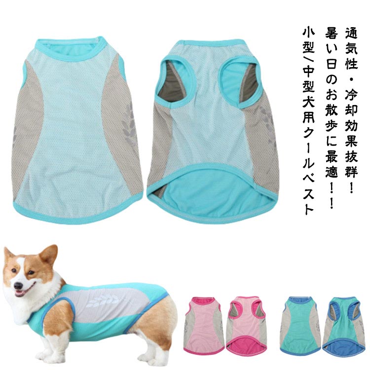 濡らす S-M クール ウェア 服 濡らして 気化熱 中型犬 冷却 冷感 瞬間 タンクトップ 犬 犬服 小型犬 夏服 メッシュ ペットウェア 犬用 クールベスト 熱中症対策 暑さ対策 ベスト