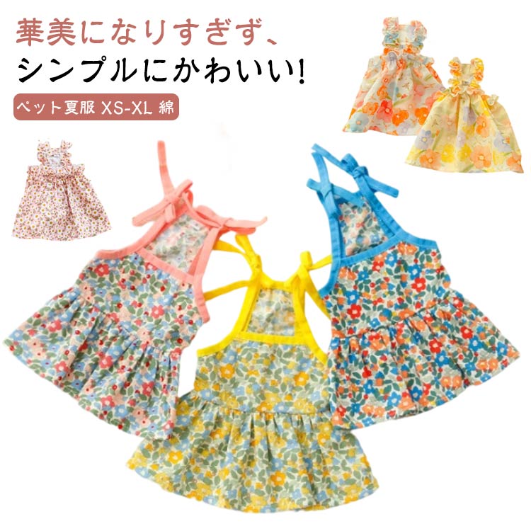 犬 夏服 猫服 猫 犬服 ペット服 ワンピース 犬の服 春夏 犬洋服 ノースリーブ キャミ キャミソール 袖なし 猫用 着せやすい 夏 かわいい おしゃれ サラサラ 中型犬 花柄 小花柄 小型犬