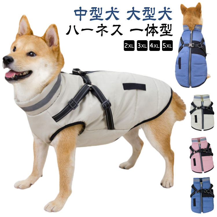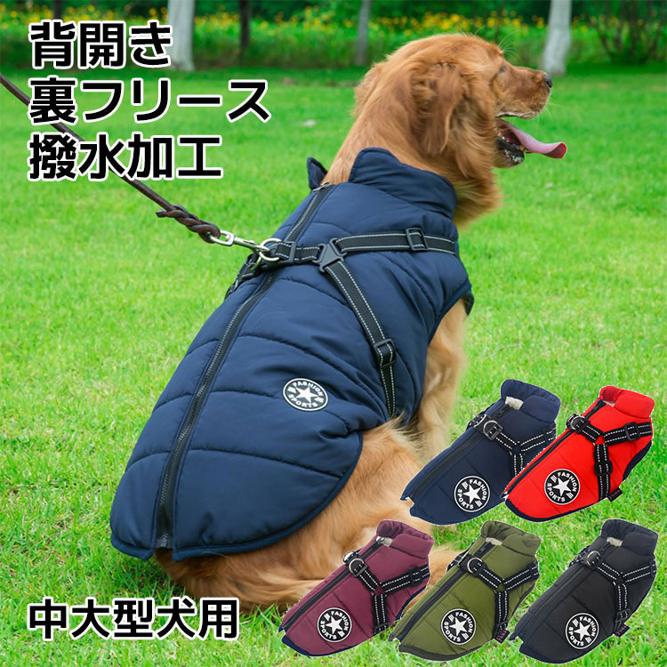 大型犬 犬服 ベスト 冬 ダウン風 ハーネス 一体型 ジャケット アウター コート ハーネス付き 背中開き 防寒 ドッグウェア ペットウェア 背開き ペット服 フリース 裏起毛 中型犬 かわいい あっ