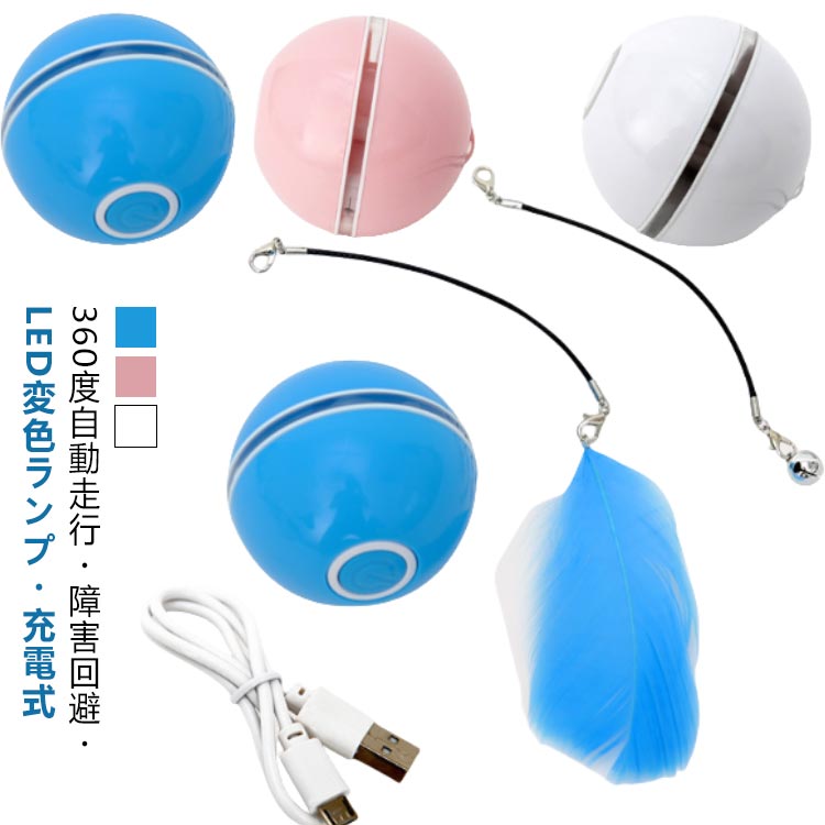 自動 ボール 電動ボール USB充電式 ライト付き 鈴付き 猫 光るボール 光る 羽根 電動 猫用おもちゃ 子猫 猫ボール 丈夫 自動走行 光 動き 長時間 ストレス解消 留守 一人遊び 運動不足