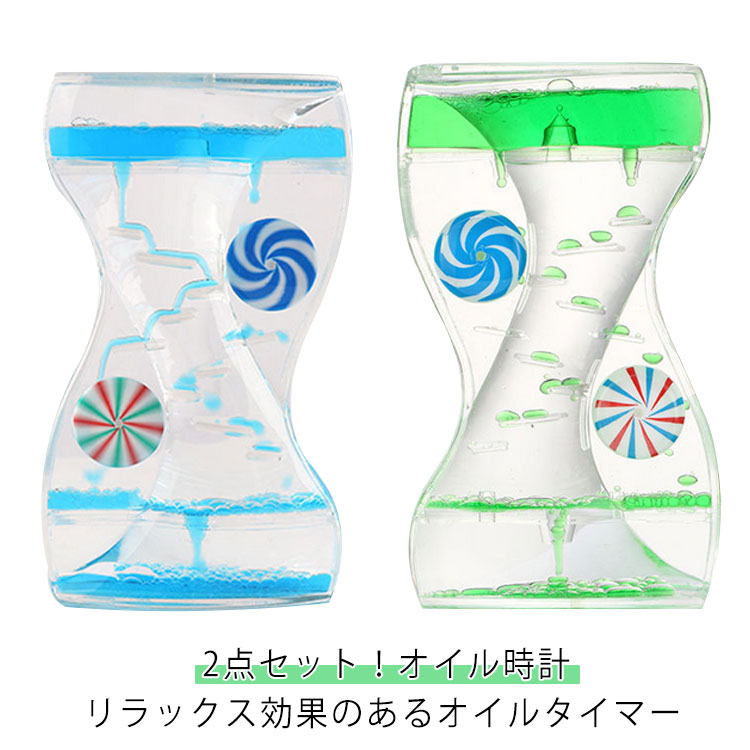 クリスマス 液体タイマー 水時計 油 【カラー選べる2個セット】 オイル オイルモーション 砂時計 タイマー 卓上 おもちゃ 癒し 置物 オイル 装飾品 部屋装飾品 透明 可愛い 誕生日 子供