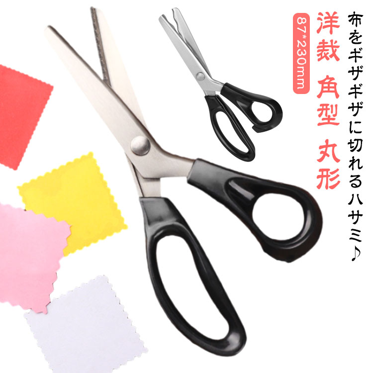 布をギザギザに切れるハサミ♪手芸用ハサミ 紙 フェルト 布 革 ハンドメイド 洋裁 角型 丸形 ステンレス製 裁縫 波型