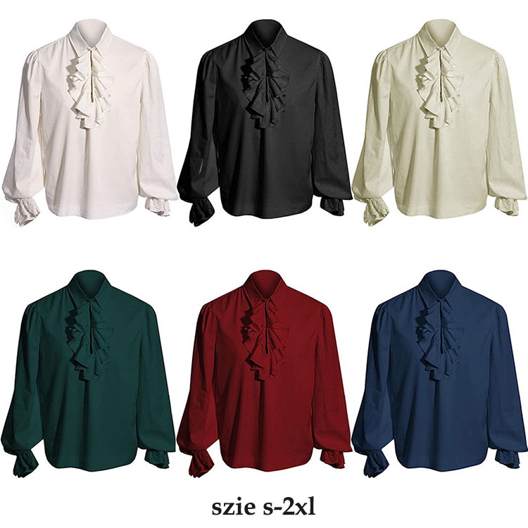 メンズ ブラウス 中世 ゴシックレトロ ルネッサンス シャツ フリル付き 長袖 立ち襟 スチームパンクトップス フリルシャツ ハロウィン仮装 コスプレ 社交ダンス衣装 学園祭 撮影 海賊 王子様 貴族