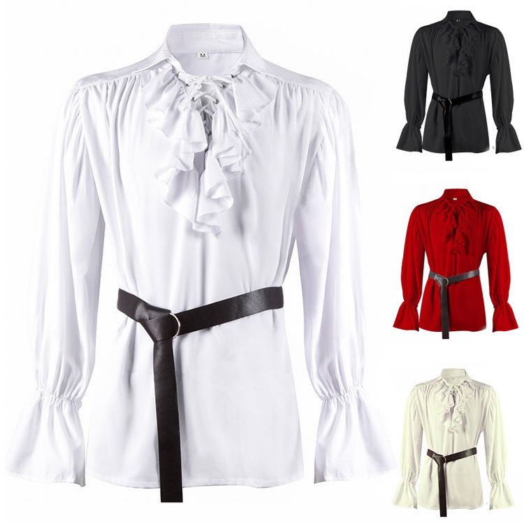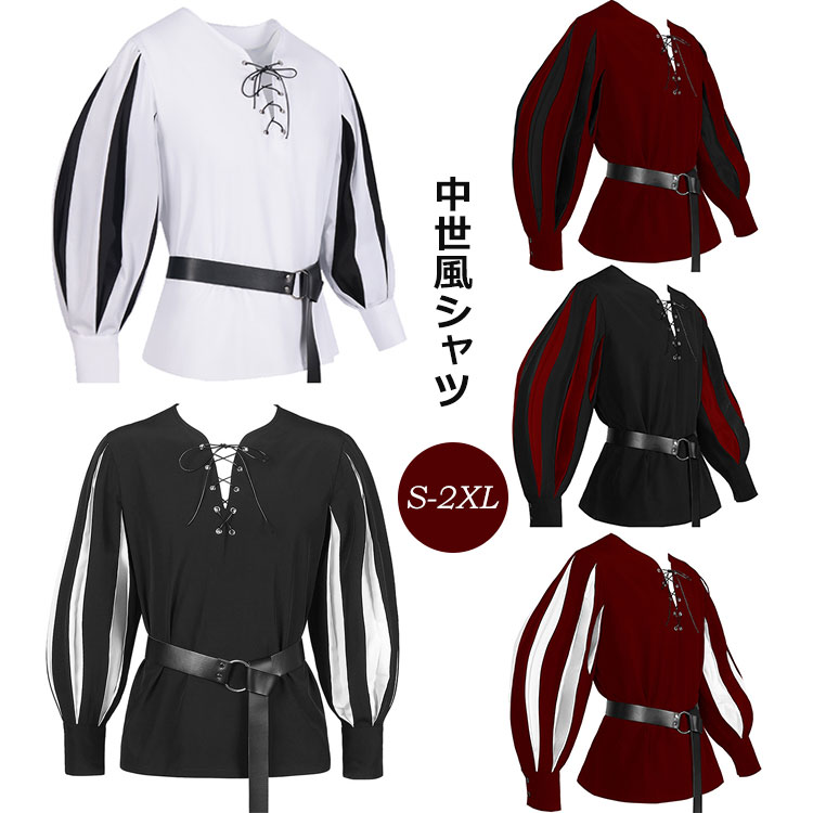 【送料無料】おしゃれなメンズ中世風海賊シャツ 無地 海賊 王子様 貴族 皇室 演劇 新劇 演出