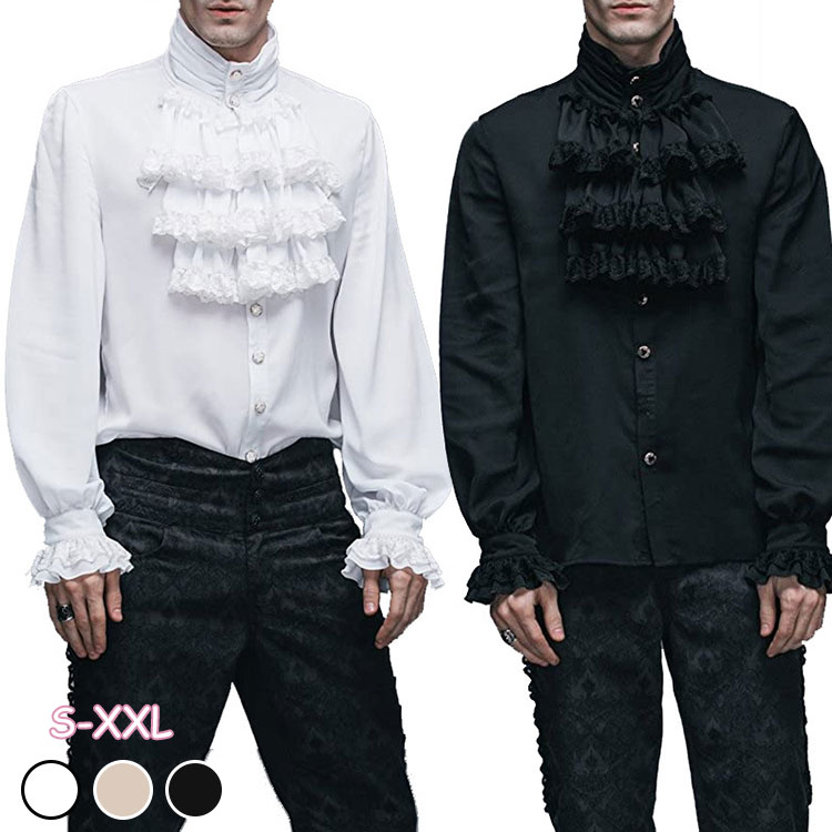 【送料無料】おしゃれなメンズフリルゴシックシャツ 無地 海賊 王子様 貴族 皇室 演劇 新劇 演出