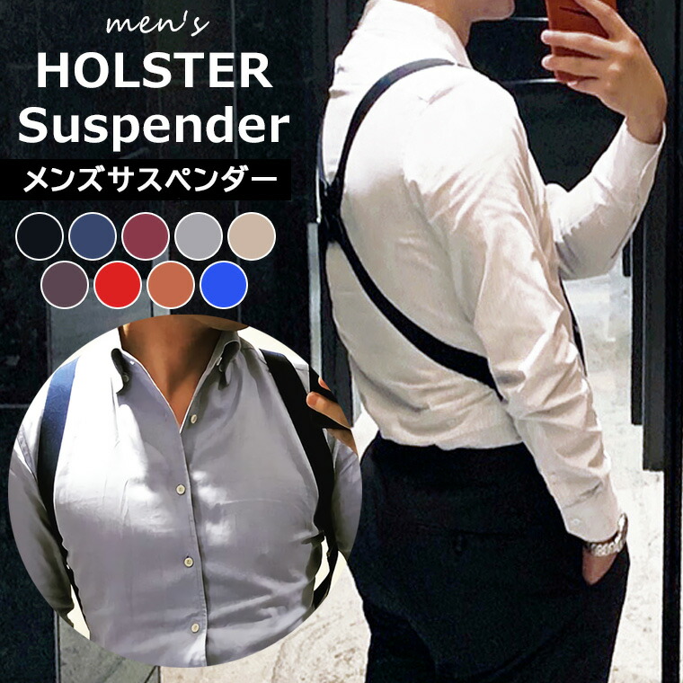 体のサイドで止めるホルスター型のサスペンダー サスペンダー メンズ ホルスターサスペンダー 2.5幅 クリップ式 型 ビジネス ショルダーサスペンダー スーツ おしゃれ 全9色