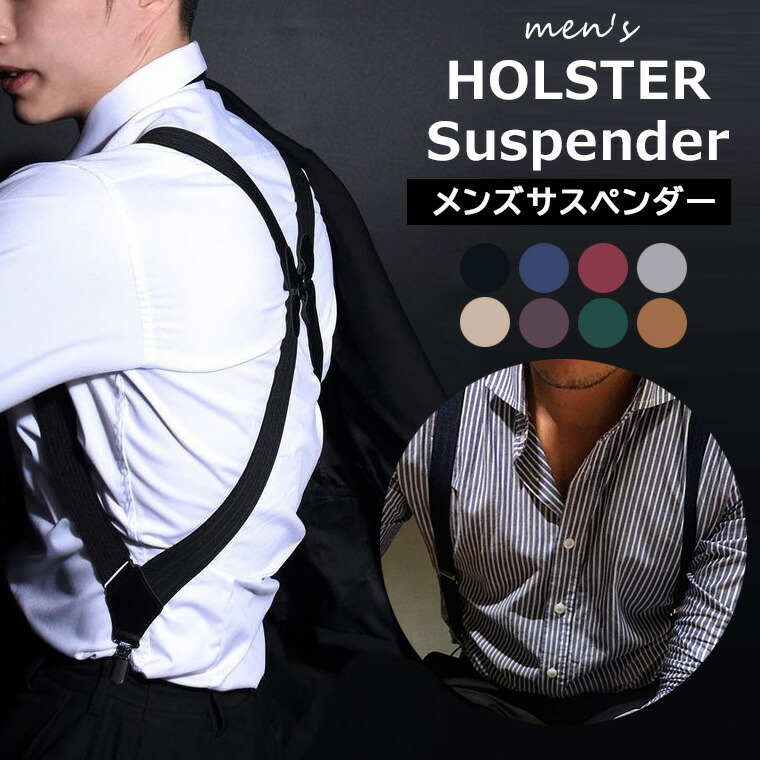 体のサイドで止めるホルスター型のサスペンダー サスペンダー メンズ ホルスターサスペンダー 120 クリップ式 型 ビジネス ショルダーサスペンダー スーツ おしゃれ 全8色