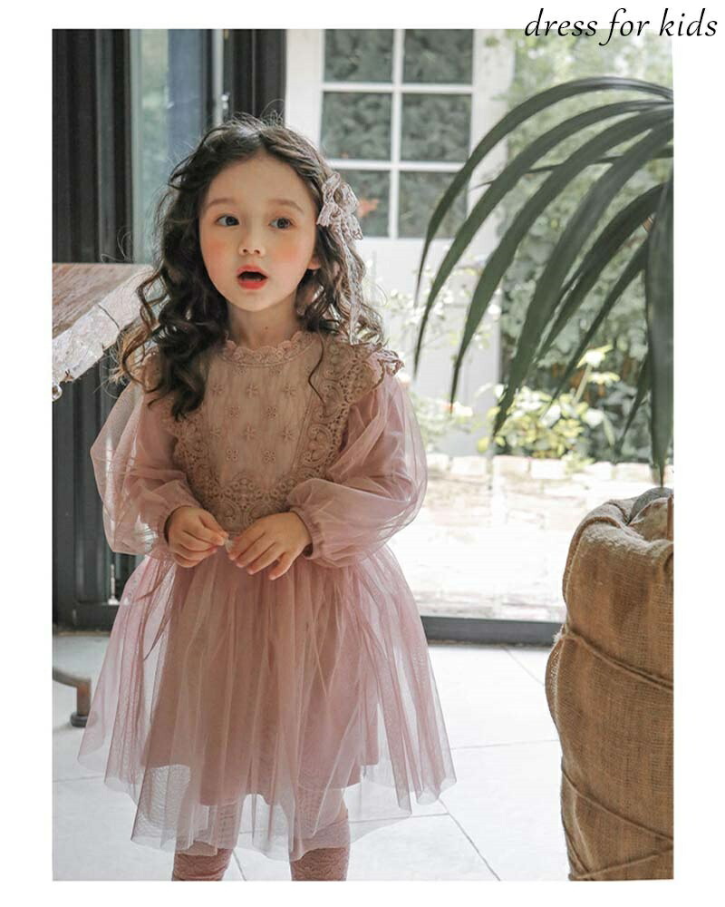 子供ドレス パフ袖 キッズドレス 入学式 ワンピース レーススカート 長袖ドレス フォーマル レース風 結婚式 発表会