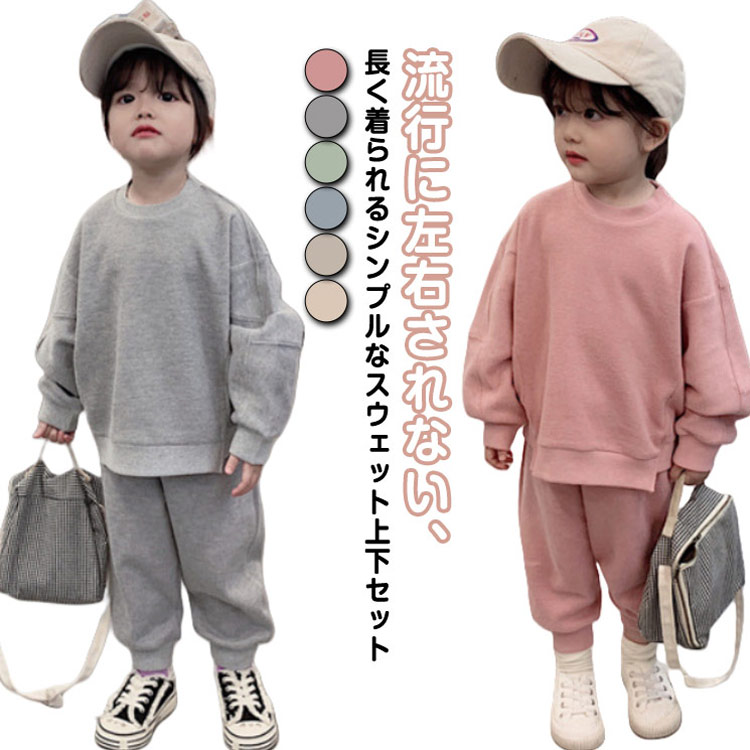 80~140 スウェット上下セット 子ども服 無地 お揃い カジュアル