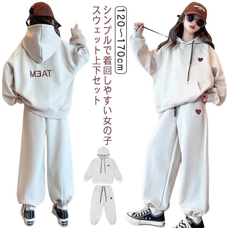 子供服 長袖 秋冬 セットアップ プルオーバー パーカー フード付き スウェットパンツ 裏起毛 薄手 キッズ スウェット 2点セット スウェットセット ゆったり スウェット上下セット ロ 女の子