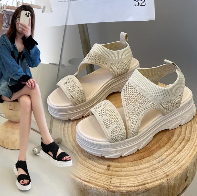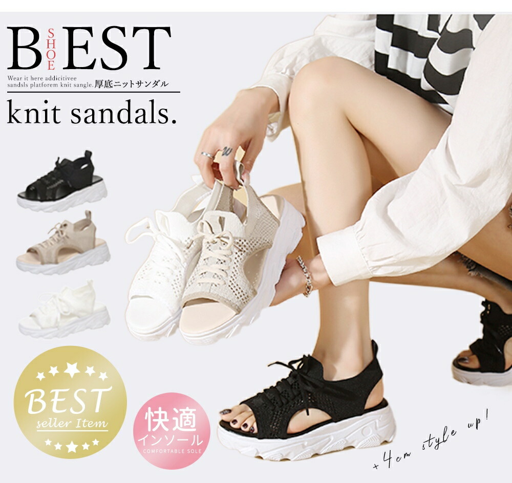 厚底サンダル サンダル レディース メッシュ ニット 軽量 夏 歩きやすい 通気性 シンプル